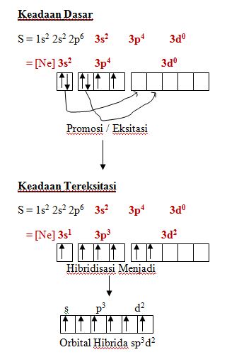 3. Molekul SF6 mempunyai bentuk oktahedral. Jika diketahui nomor atom S = 16, bentuk orbital hibrida SF6 adalah ….