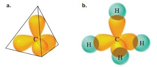 Hibridisasi sp3 dapat menjelaskan struktur molekul tetrahedral. Orbital 2s dan tiga orbital 2p melakukan hibridisasi untuk membentuk empat orbital sp, masing-masing terdiri dari 75% karakter p dan 25% karakter s. Cuping depan mensejajarkan diri dan penolakan elektron bersifat lemah. Hibridisasi satu orbital s dengan tiga orbital p (px, py, dan pz) menghasilkan empat orbital hibrida sp3 yang mempunyai sudut sebesar 109,5º satu sama lain sehingga membentuk geometri tetrahedral. Hibridisasi sp3 memiliki jenis ikatan tunggal atau satu ikatan sigma dimana kekuatan ikatan pada hibridisasi ini paling lemah diantara hibridisasi lainnya, sedangkan panjang ikatan pada hibridisasi ini yang paling besar diantara lainnya.